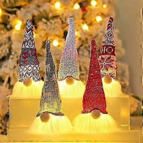 Pack of 5 Light Up Christmas Plush Gnomes Considered a symbol of good luck, the gnome is a good choice for Christmas decoration, creating a warm and loving Christmas atmosphere, and can also be used as a night light by the child's bed to wait for Santa Claus Battery Operated: Warm white LED lights on the round belly. When the switch is on, the light is soft High Quality: Each Christmas plush gnome is handmade from high quality and safe materials. The hat is made of soft felt and plastic Material: knitted fabric Size: 20*7cm Power supply mode: 3 batteries AG10/LR1130 (included) Lighting mode: always bright warm yellow light Applicable scene: festive decoration, gift giving Weight: about 30g each Product packaging: 5* Luminous Christmas plush gnomesNext page of related sponsored productsSafety and product resourcesProblem loading informationProblem loading informationProblem loading informationProblem loading information