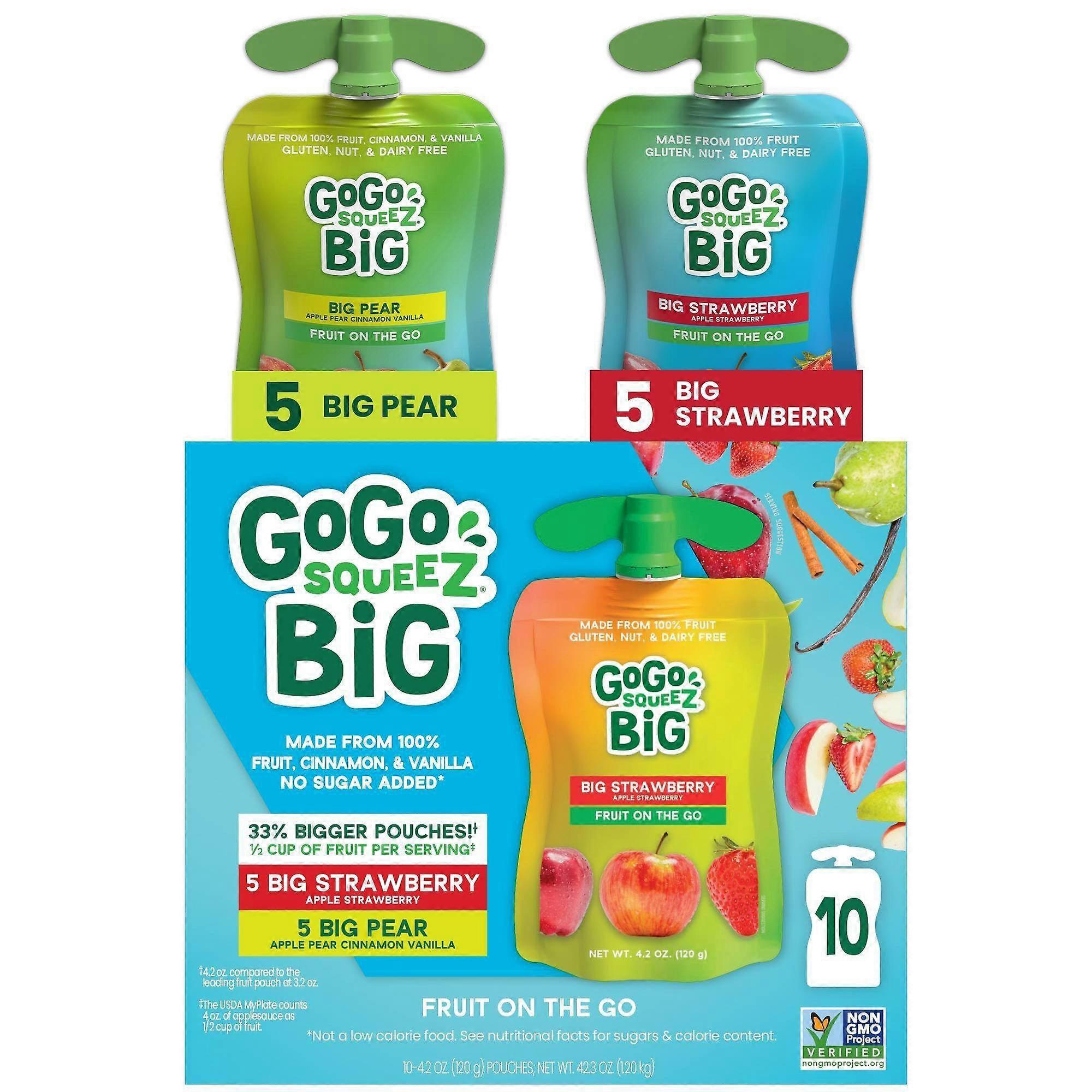 Gogo Squeez Fruit On The Go Big Variety Applesauce Pouch, Playful Pear & Spunky Strawberry, 10 Ea