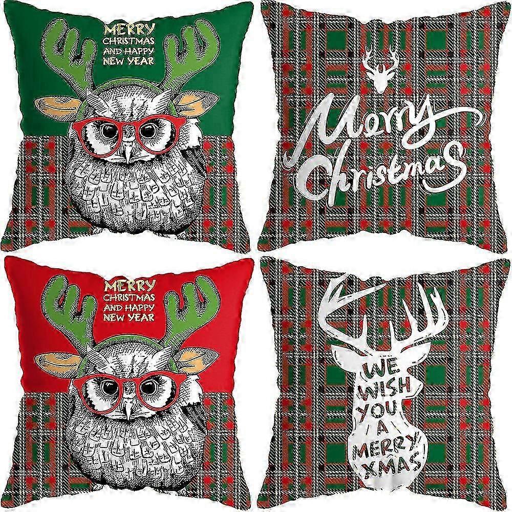 Gojoy 4psc Red Plaid Christmas Throw Pillow Set With Elk Christmas Print Cushion Set With Christmas Throw Pillow Christmas Cushion Christmas Style--co