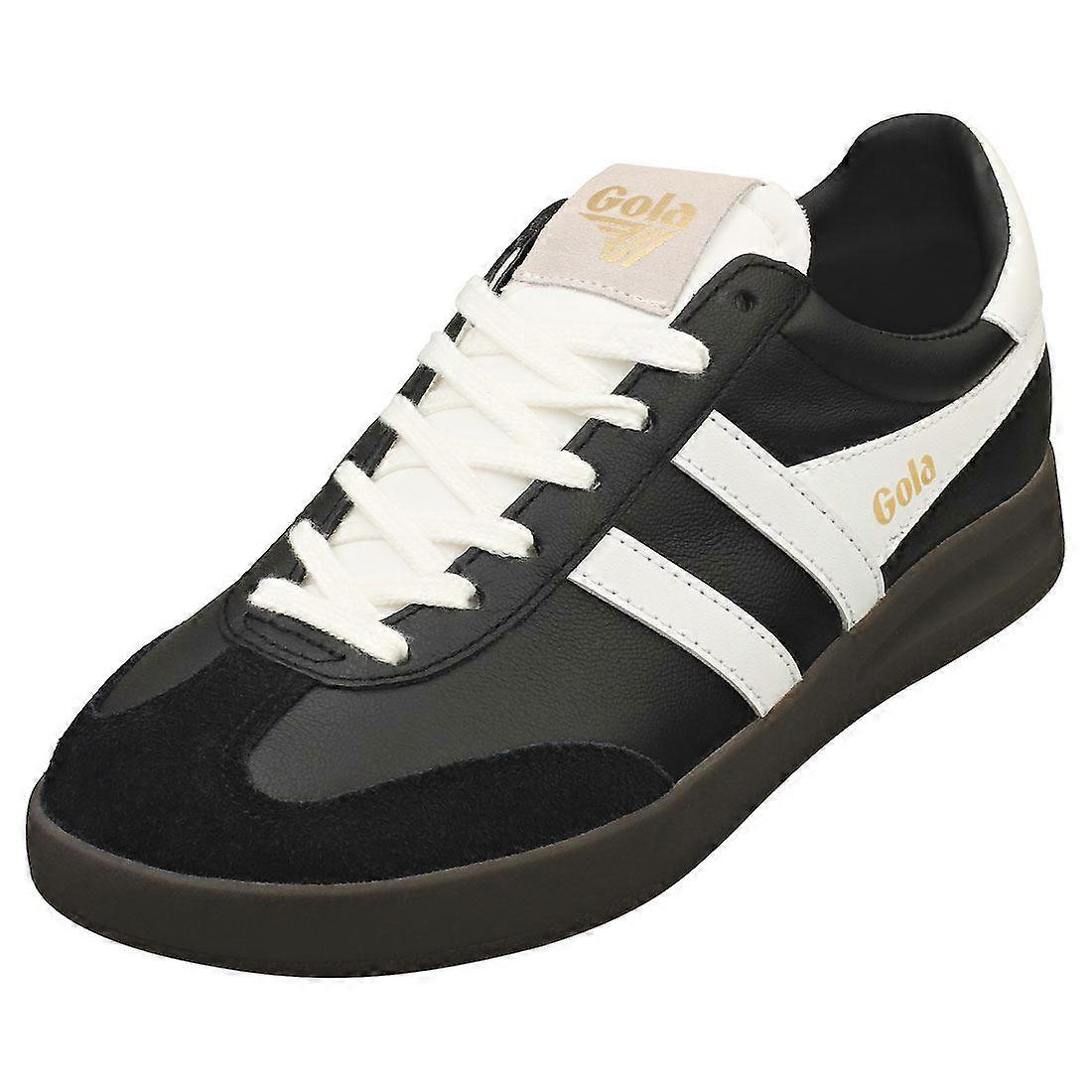 These Gola Cyclone trainers in a striking black and white colourway are the perfect blend of timeless style and modern comfort. Crafted from durable leather with breathable textile and synthetic linings, they offer all-day wearability. The textile insole provides cushioning while the rubber sole ensures excellent grip on various surfaces. Finished with classic lace-up fastenings, these trainers effortlessly complement a range of casual outfits.