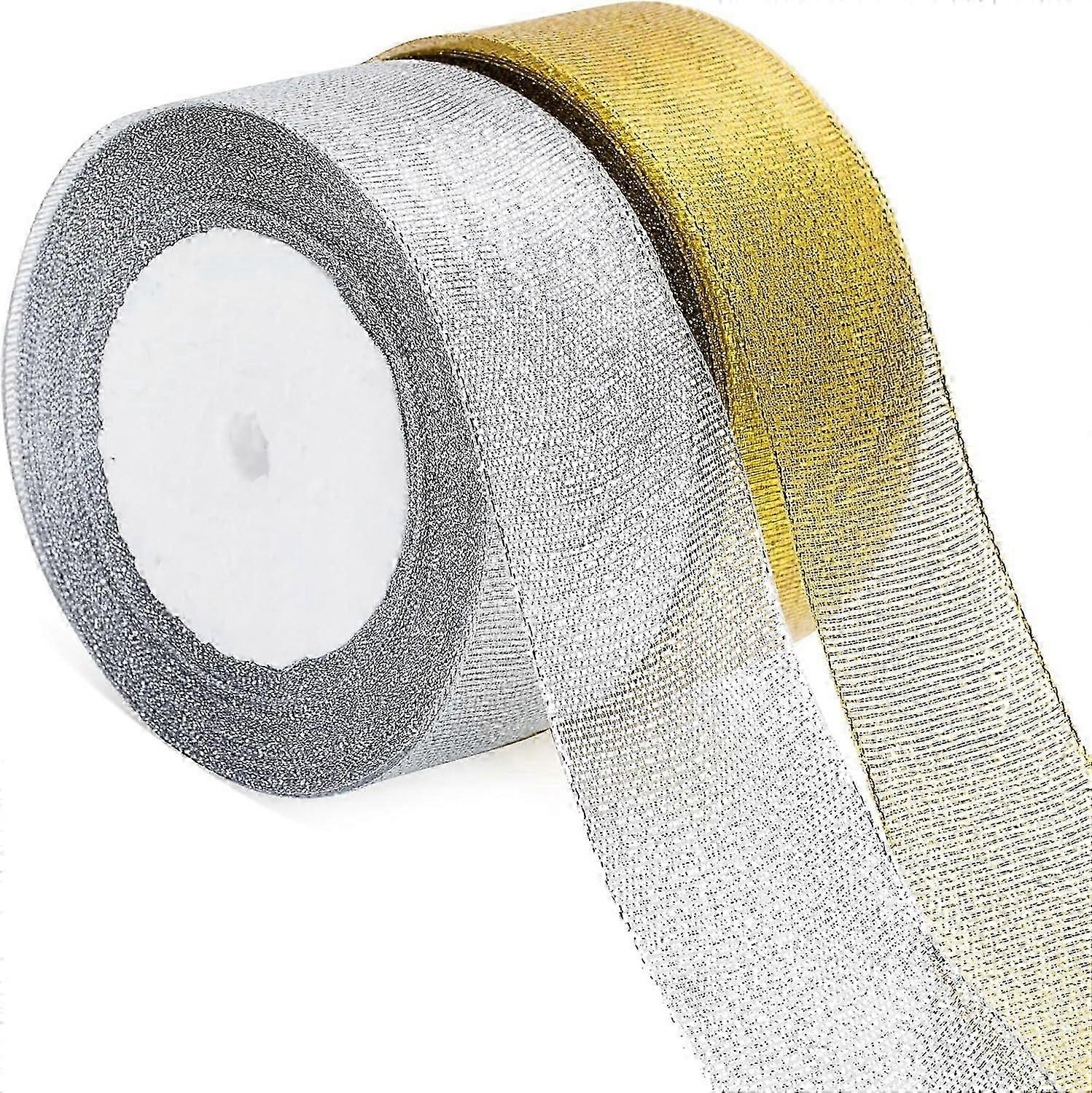 Gold and silver ribbon, 40mm Christmas organza ribbon, 44m wide gift ribbon, decorative ribbon for gift wrapping