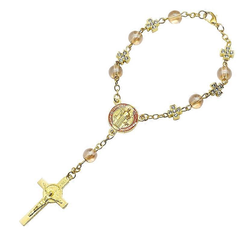 Gold Cross Bracelet-Rosary Catholic Holy Beads Handmade Accessories Jewelry