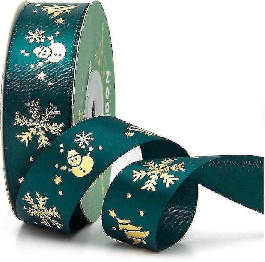 Gold Foil Christmas Ribbon Snowman Snowflakes Pattern Satin Ribbons for Holiday Xmas Gift Wrapping G