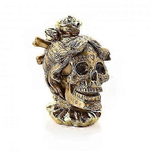 A wicked halloween decoration option for any home this halloween. A gold skull bride with roses adorning her hair, this is certain to scare any guests this year. Details: Skull decoration Resin Perfect for halloweenGold
