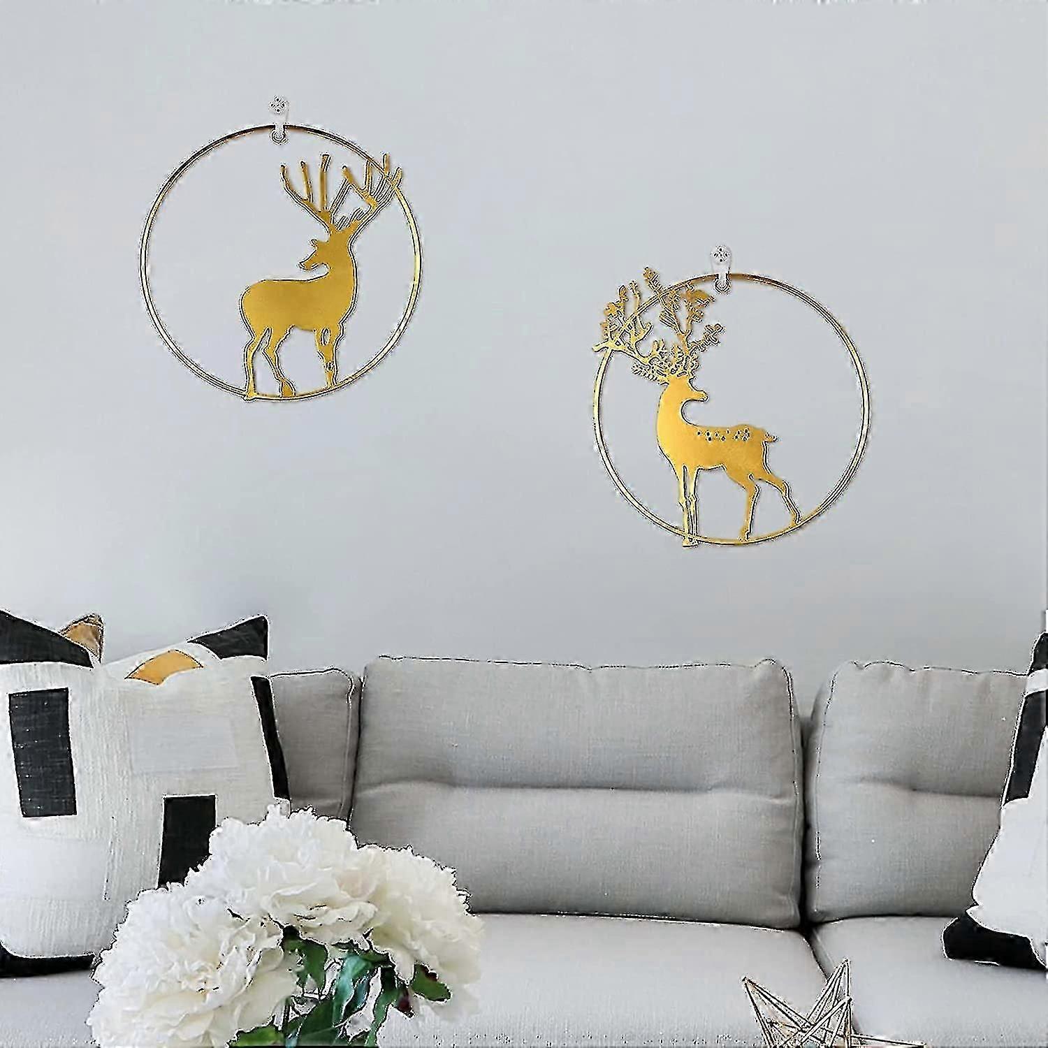 Golden Elk Metal Wall Decor 2 Pack 12" Hanging Wall Art For Home Christmas Decorations Indoor,bedroom, Living Room, Dining Room,holiday Gifts Round Wa