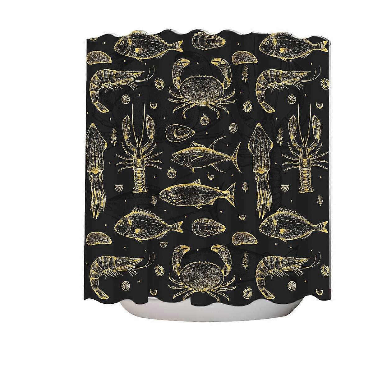 Golden Seafood Fish Crab and Squid Shower Curtain