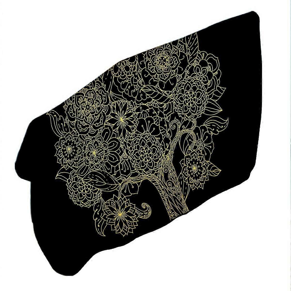 Golden Tree Drawing over Black Microfiber Beach Towel