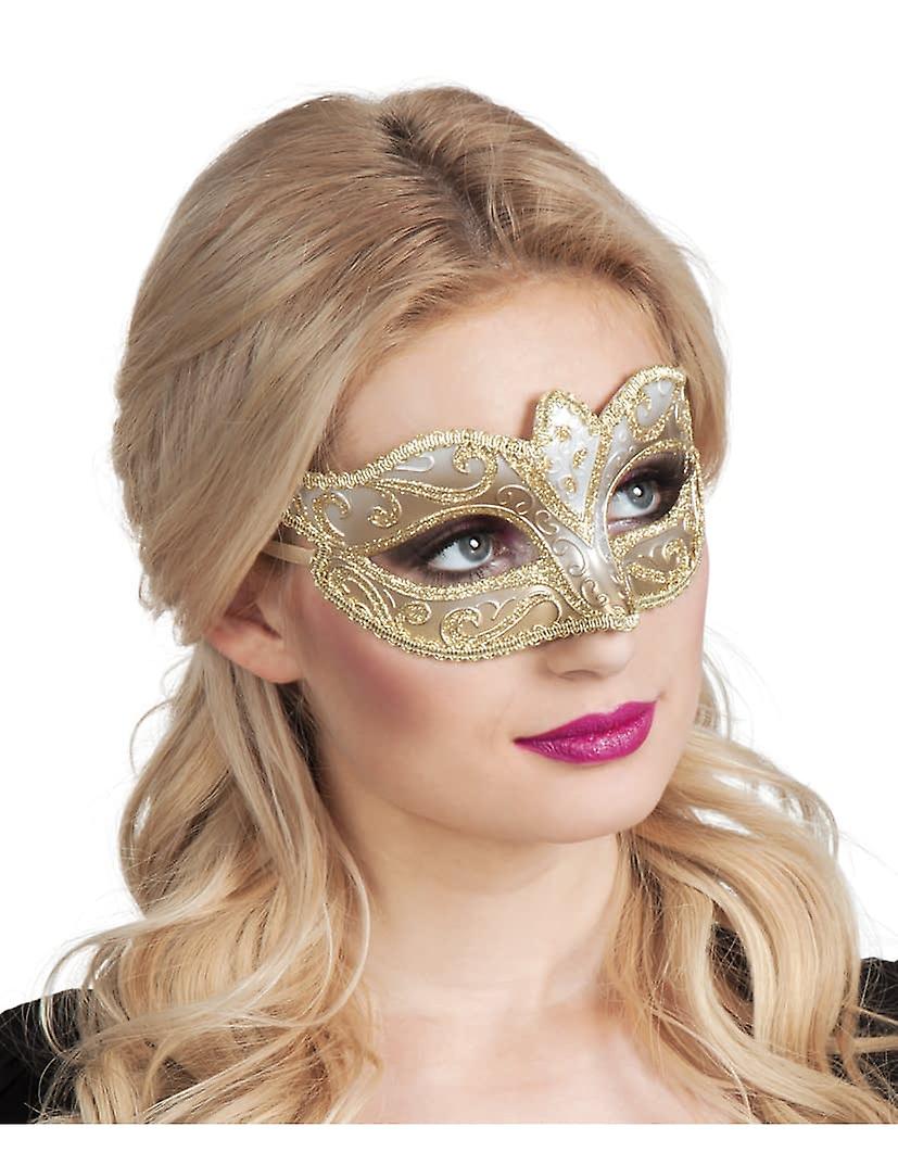 Loup vénitien doré pailletté femme