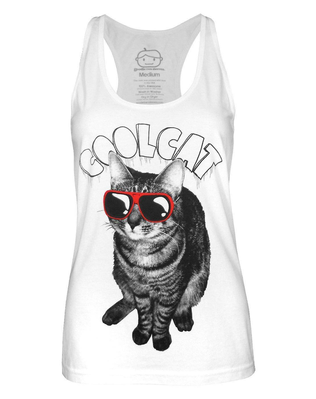 Goodie Two Sleeves Womens Vest White Cat Graphic