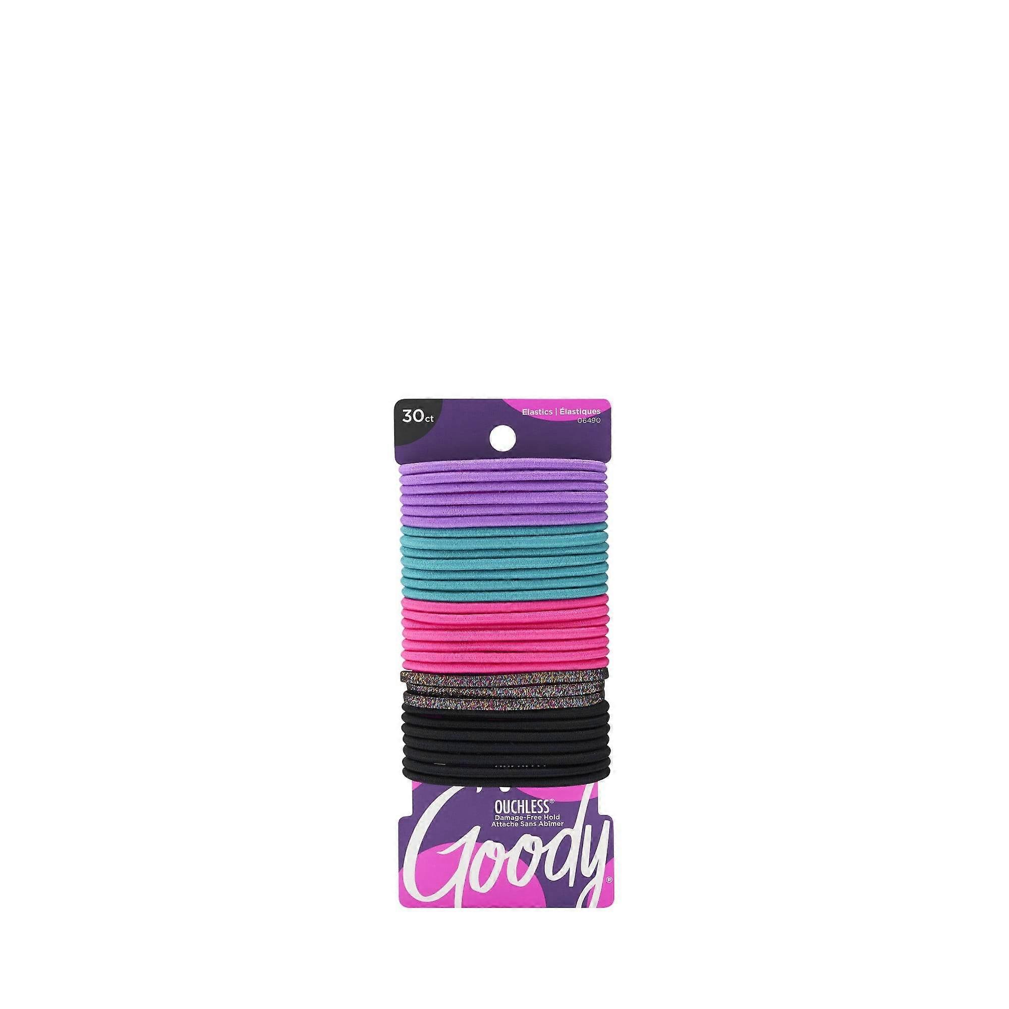 GoodyHair Goody Hair Elastics, Ouchless No-Metal Hair Ties, Assorted Colors, 30 Ct 30 hair elastics in assorted colors Flexible and thin cloth hair ties - great for fine to thin hair Assorted colors vary by pack Use hair rubber bands for ponytails, braids, updos and other styles No damage hair ties won't break or damage hair Stretch ponytail holders won't come loose or pull out hair No slip grip hair ties great for securing long-lasting hair styles Also available in no crease hair ties