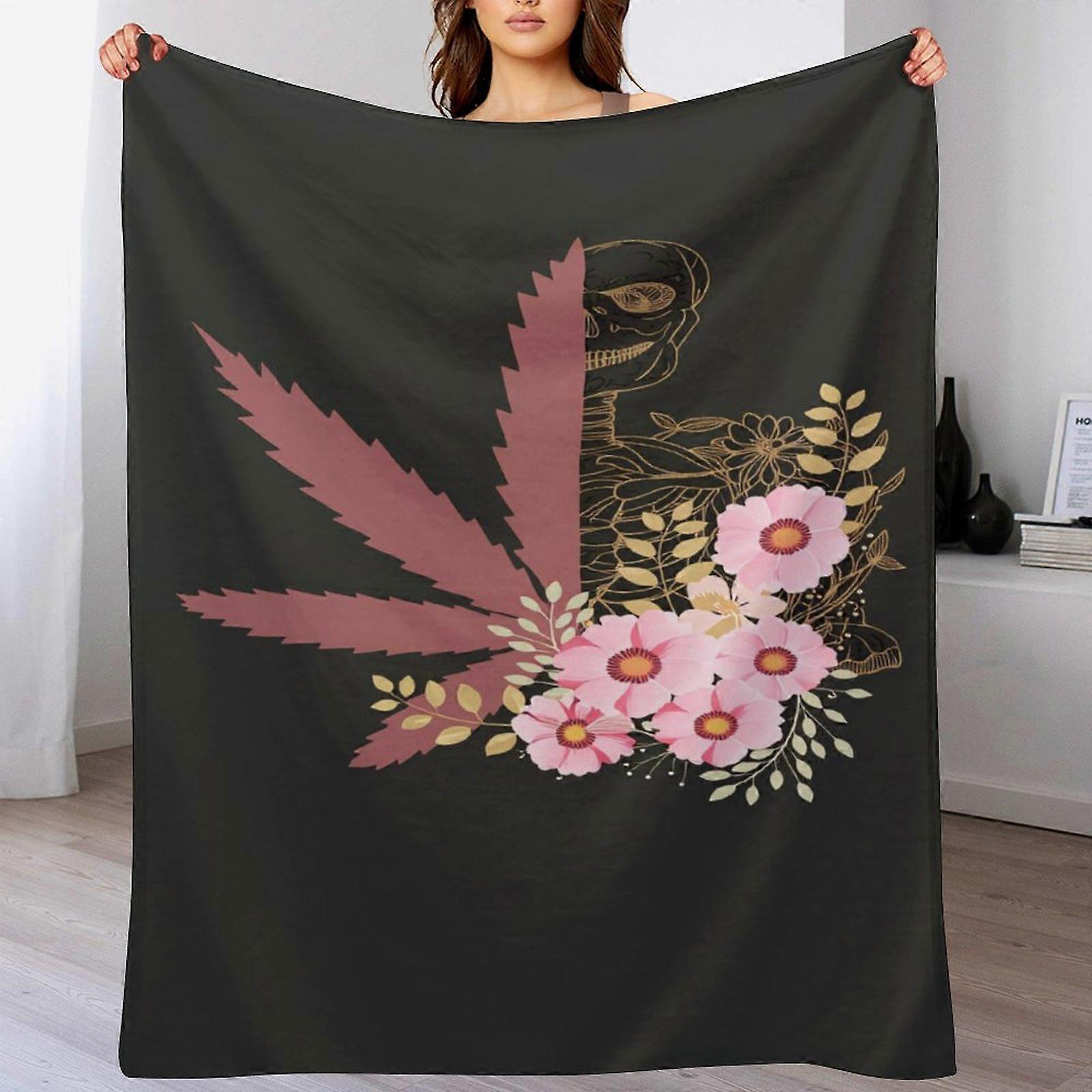 Gothic Skeleton & Floral Botanical Leaf Graphic Printed Throw Blanket Cozy Home Decor for Adults