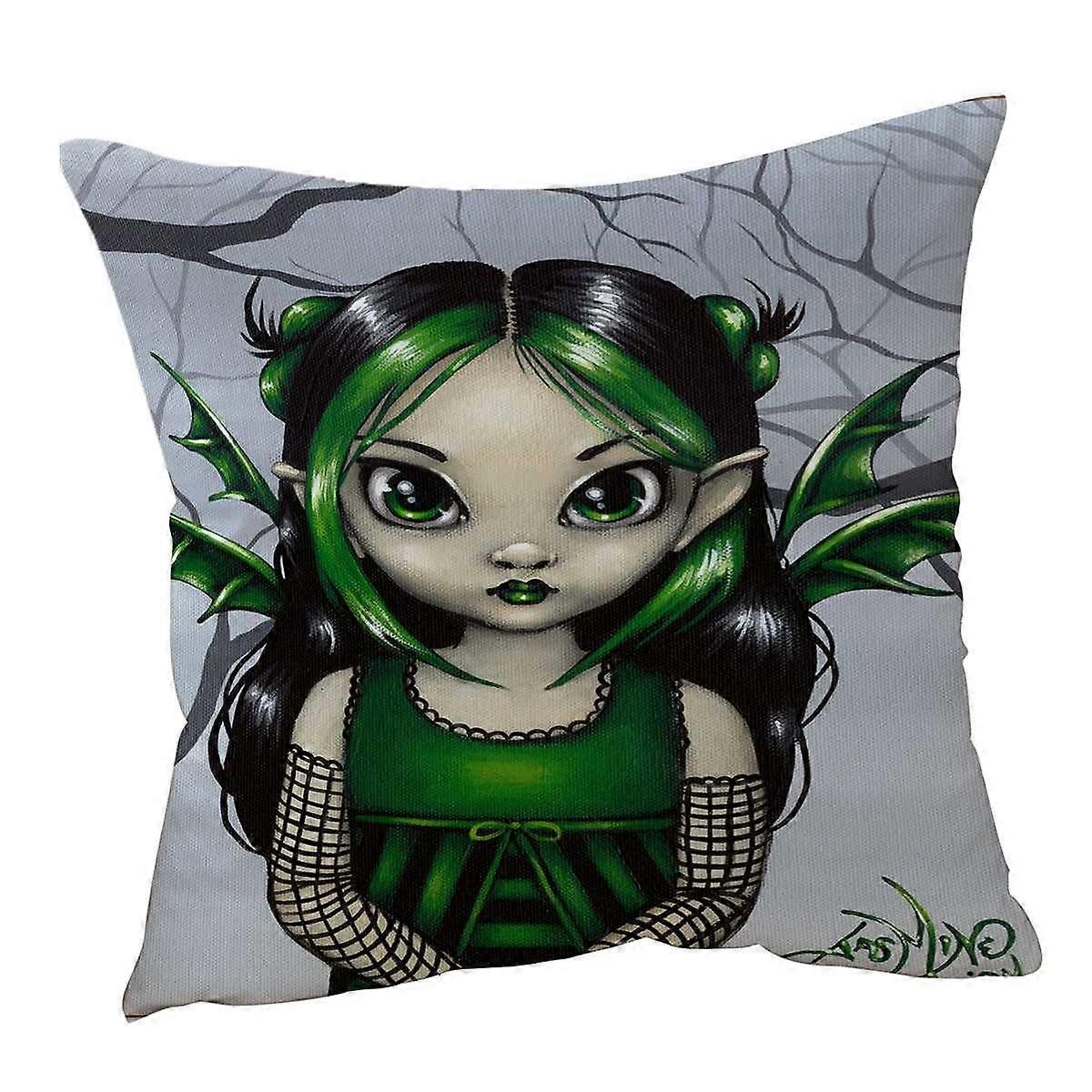Gothling Cute Green Goth Fairy in Misty Forest Cushion Cover