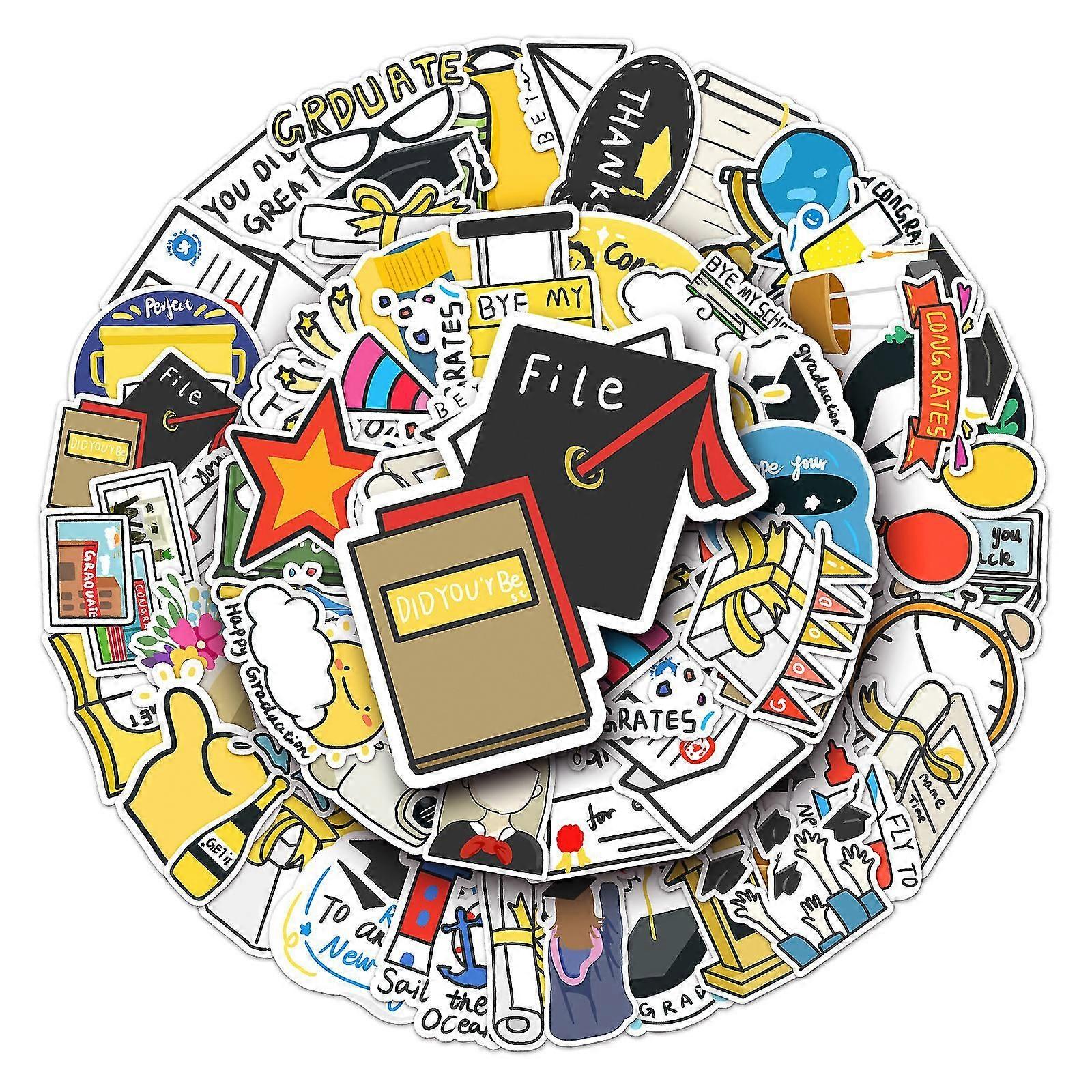 Graduation Season, Purple Gothic Doodle, Stickers for Kids50 Pack Mixed Vinyl Stickers for Laptop,