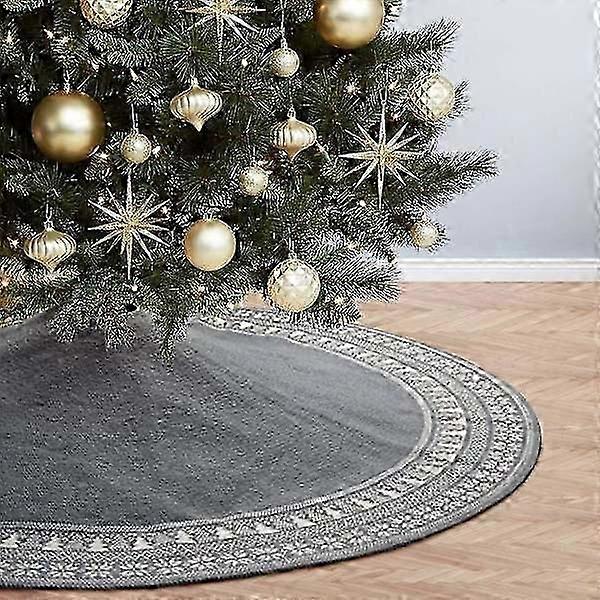 Gray Dremisland Christmas Tree Mat, 122 cm Knitted Christmas Tree Mat with Snowflake Thick Christmas Tree Mat