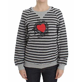 Gray Striped Cotton Crewneck Sweater