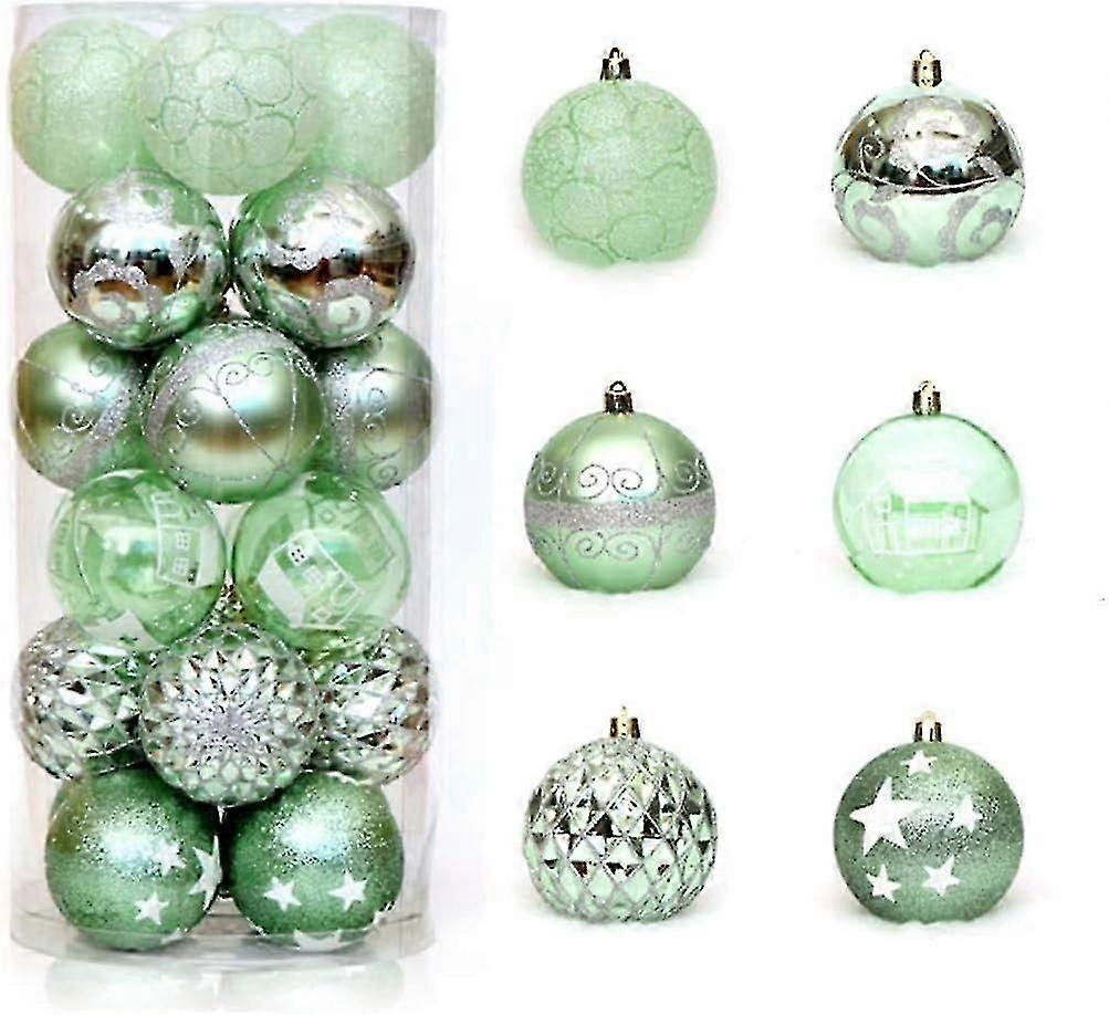 Green 24pcs 6cm/2.36" Christmas Baubles Shatterproof Plastic Christmas Ball Ornaments Decoration for Christmas Tree Decor Party Decor Pendants