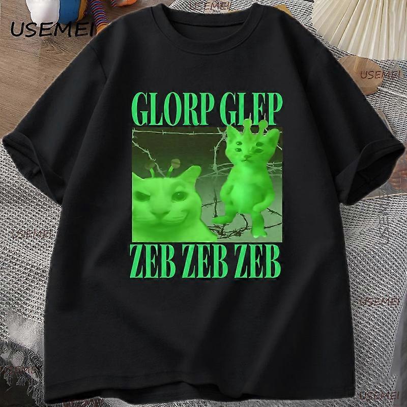 Green Alien Cat T Shirt Men Women Cat Meme Tee Silly Cute T-Shirt Cotton Short Sleeve Casual Round Neck Tshirt Streetwear