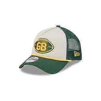 Celebrate your favourite NFL team's rich history with the 2024 NFL Sideline Historic 9Forty A Frame Trucker Cap. This officially licensed cap blends heritage style, comfort, and team pride, making it an essential accessory for every dedicated fan. Team Heritage: Honour the Green Bay Packers storied past with the classic team logo prominently on the front. A Frame Trucker Design: Combines a structured fit with a mesh back for optimal breathability and classic trucker style. Premium Materials: The crown fronts are made from 100% cotton for comfort, while the crown backs are made from 100% polyester for durability. The visor and button feature a mix of cotton and polyester. Official Sideline Gear: Reflecting the historical significance of your team, this cap is part of the official sideline collection for the 2024 NFL season. Breathable Mesh Back: The mesh back ensures maximum ventilation, keeping you cool and comfortable during any activity. Adjustable Snapback: The snapback closure provides a customizable fit for most head sizes. Classic Style: The timeless design and team colours make this cap a versatile addition to any fan's collection.   Crown Front: 100% Cotton Crown Backs:100% Polyester Button & Visor: Cotton/Polyester blend Team Logo: Embroidered on front Officially Licensed NFL Product   Show your love for the Green Bay Packers with the 2024 NFL Sideline Historic 9Forty A Frame Trucker Cap. Perfect for fans who appreciate the legacy and tradition of their team.