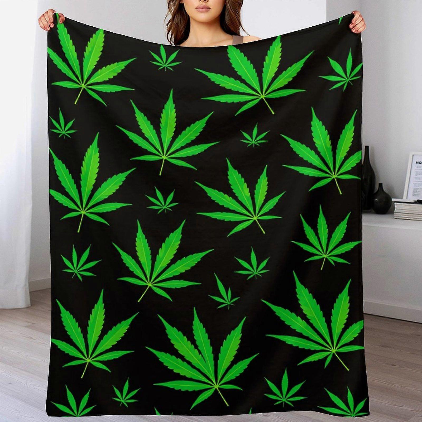 Green Botanical Leaf Pattern Graphic Print Fleece Blanket, Soft Warm Cozy Throw for Bedroom Sofa Living Room Decor, Adult Unisex