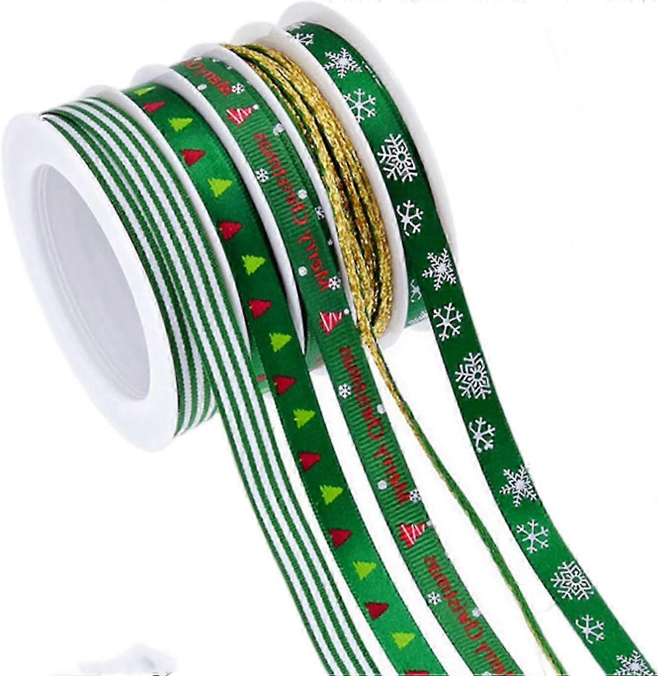 Green Christmas Grosgrain Ribbon Bundle Polyester Double Sided Satin Ribbon Fabric Ribbon Crafts DIY