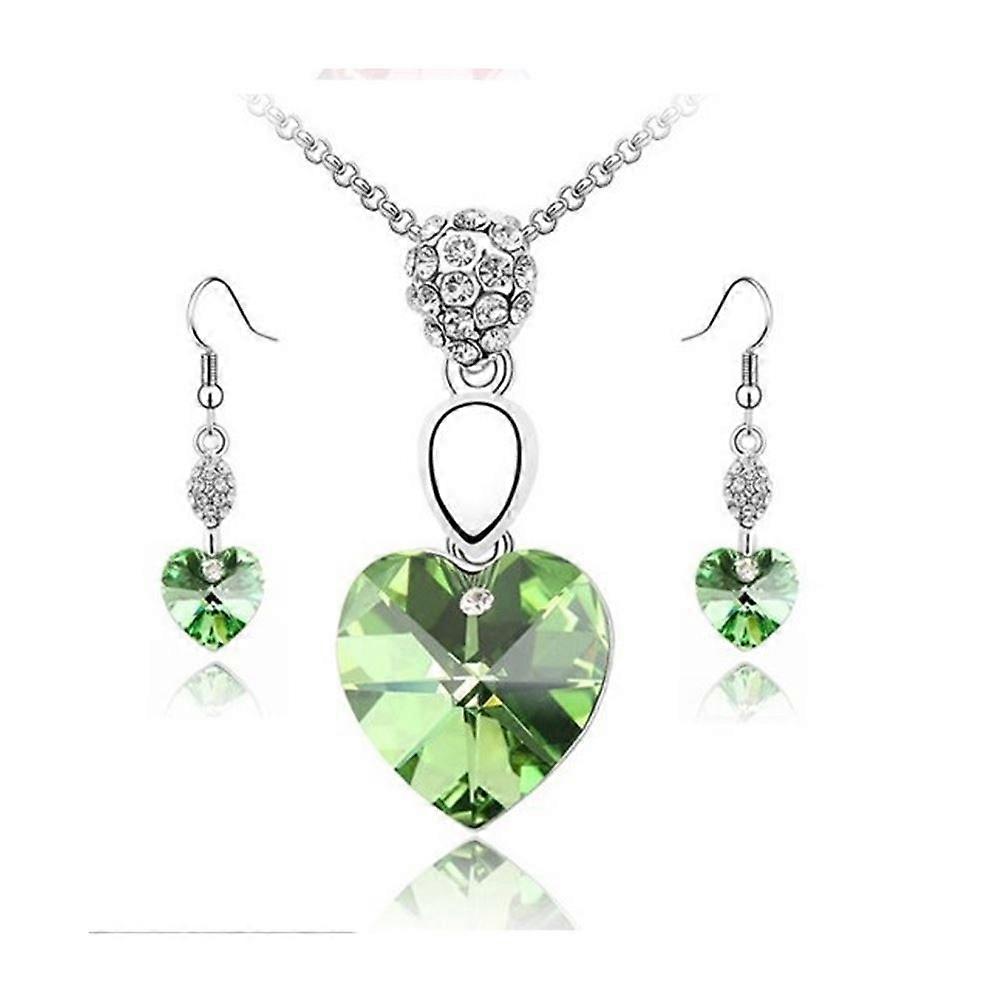 Green Crystal Elements Heart Pendant Necklace And Earrings Set BG1460