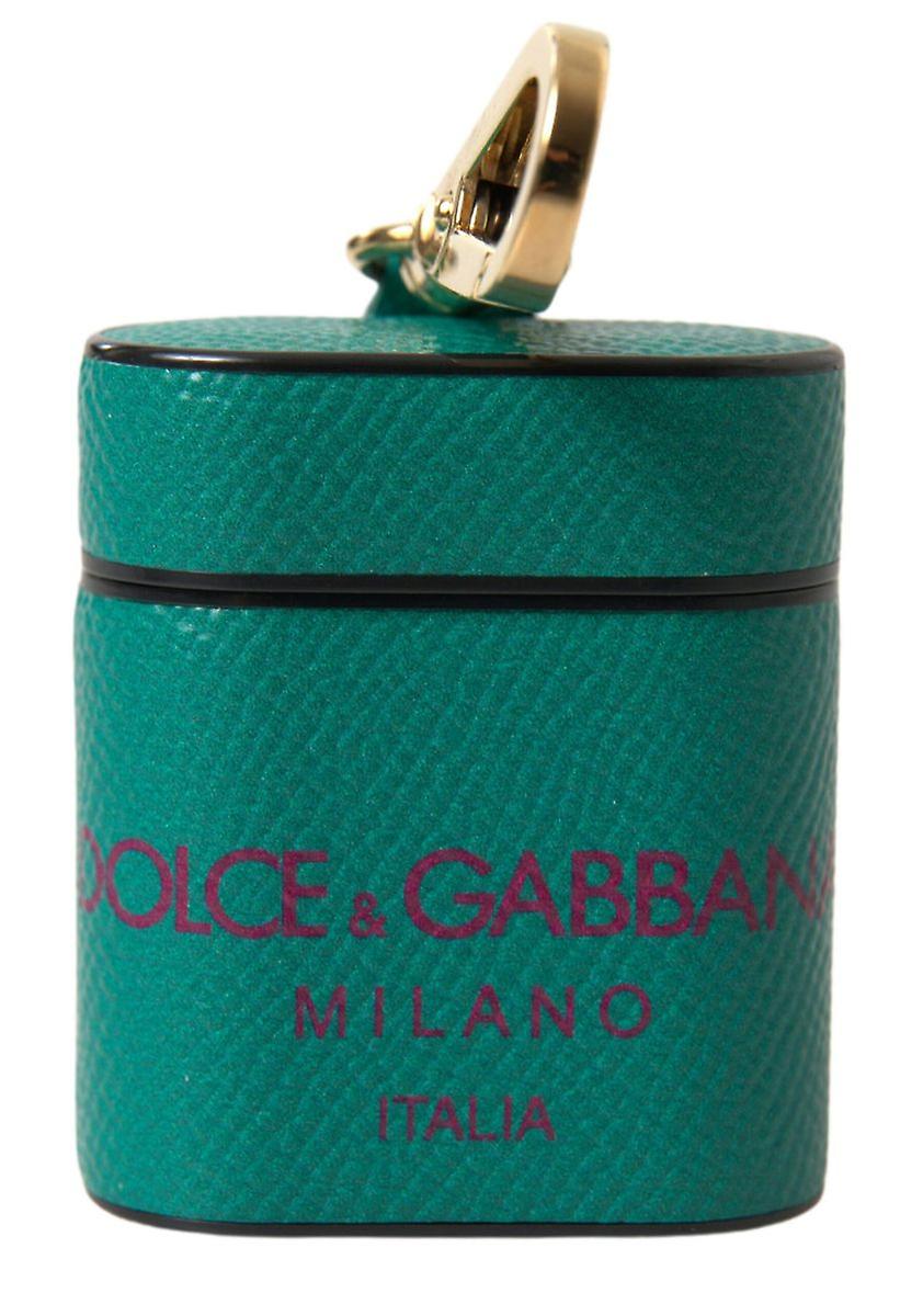 Green Maroon Calf Leather Logo Print Strap Airpods Case