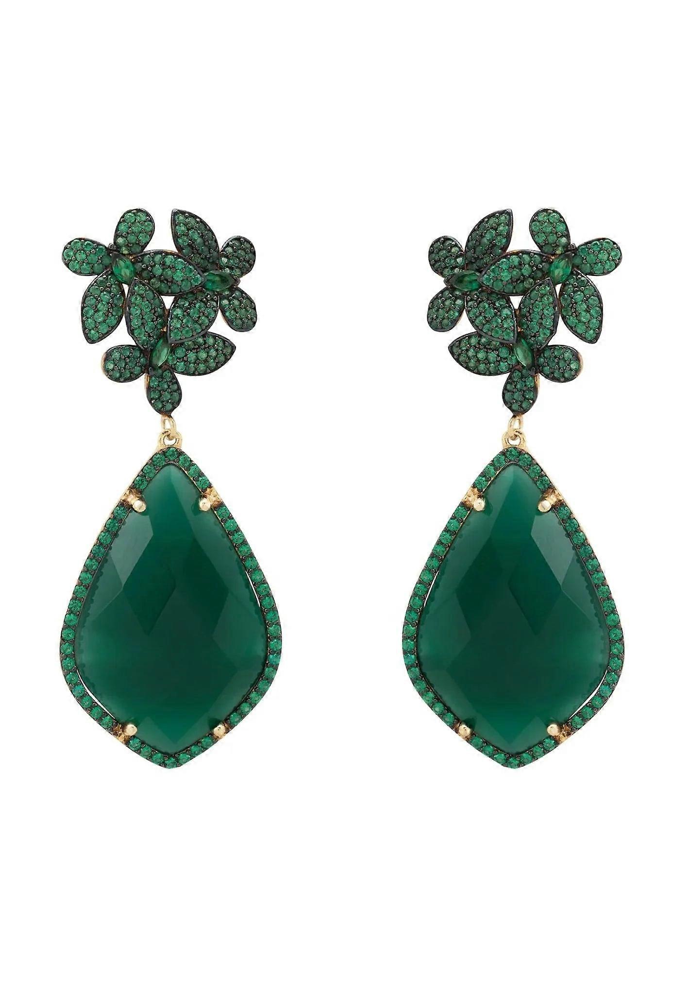 Green Onyx Teardrop Earrings in 22ct Gold for Women