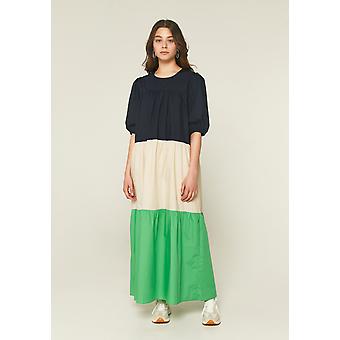 Green three‐tone maxi dress with multicoloured tiers by Compania Fantastica