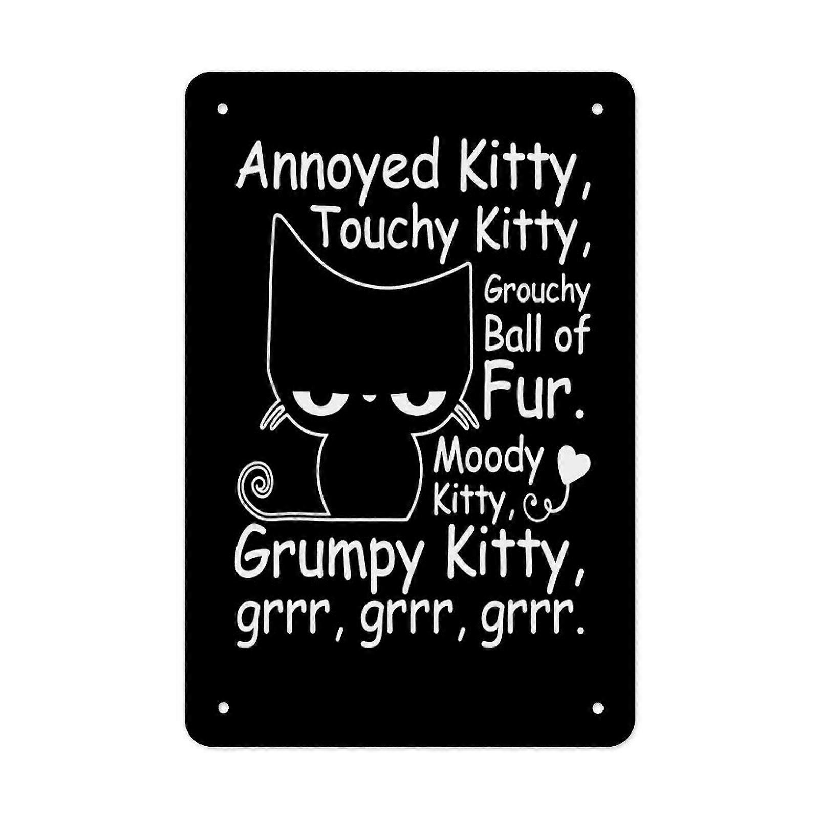 Grumpy Kitty Funny Quote Metal Tin Sign, Cute Cat Line Art Wall Decor for Home Office Bedroom, Humorous Animal Wall Art Gift