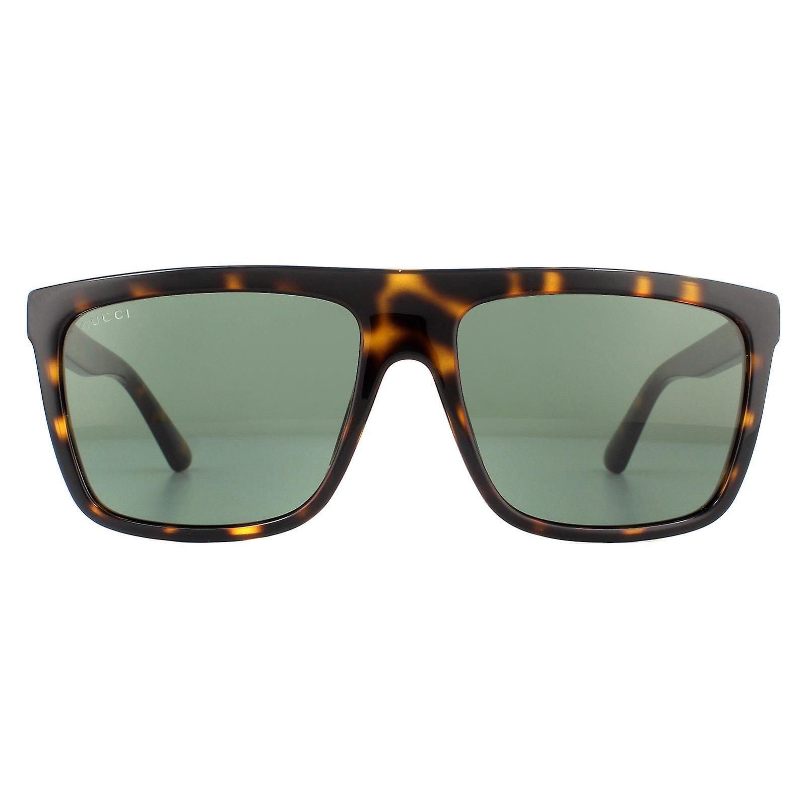 Gucci Sunglasses GG0748S 003 Havana Green are a contemporary rectangular style with a distinctive flat top and Gucci metal branding on the temples.