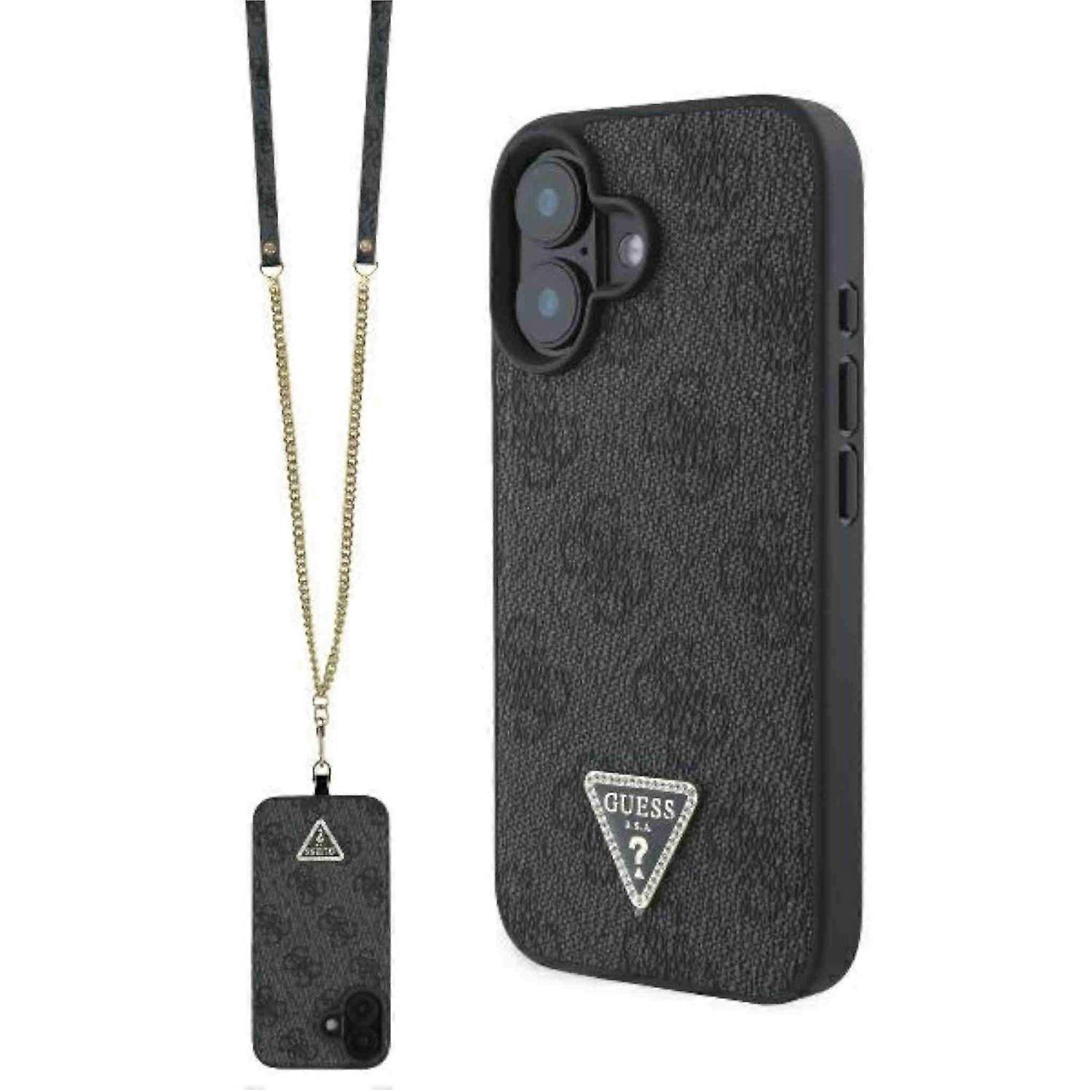 GUESS Apple iPhone 16 Metal Logo Strass Crossbody Hülle Schwarz