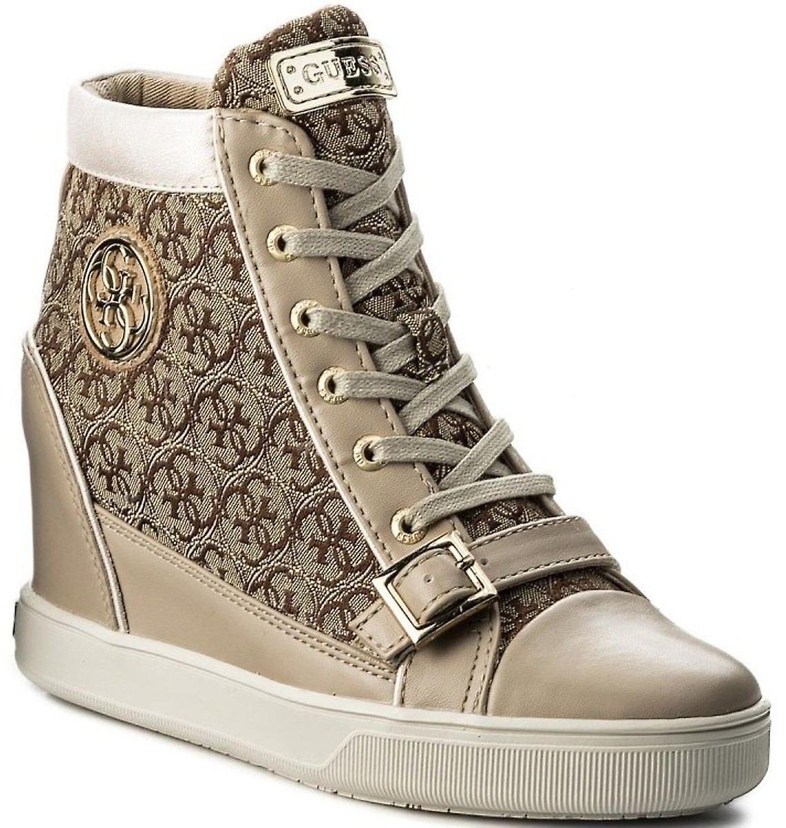 Guess Fiore Logo Brown Womens Eco Leather Wedge Trainers