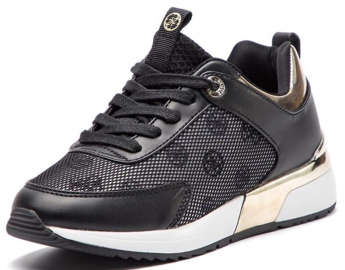 Guess Marjin Black Gold Womens Leather Trainers Shoes