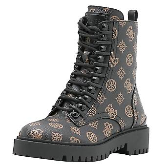 Guess Oxana Brown 4G Logo Faux Leather Womens Combat Boots