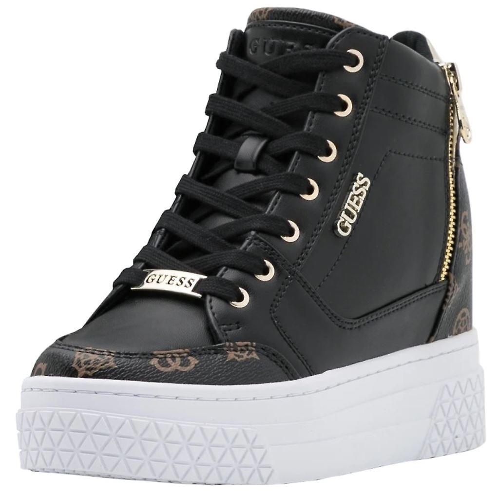 Guess Riggz 2 Black Gold Womens Eco Leather Wedge Trainers
