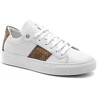 Guess Toda White Brown 4G Logo Womens Leather Trainers