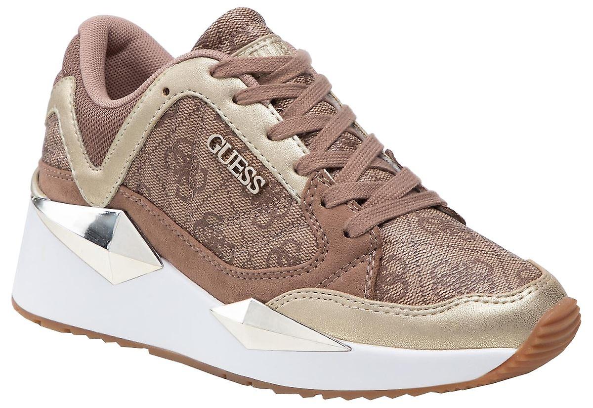 Guess Traves 4G Logo Beibr Gold Leather Womens Trainers