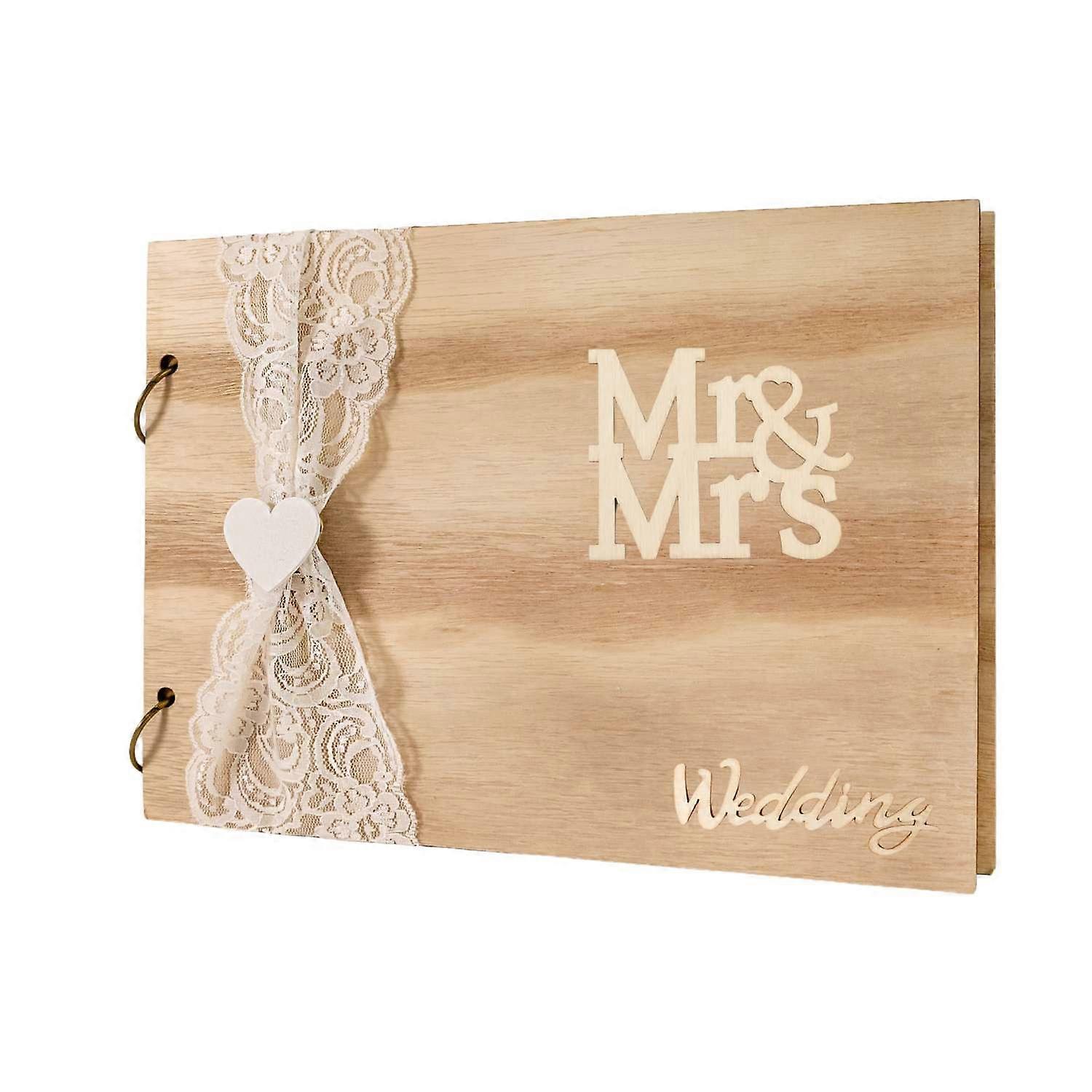Gästebuch Hochzeitsalbum Mr & Mrs Vintage DIY Hochzeitsbuch aus Holz 26.1 x 18.9 x 0.9 cm