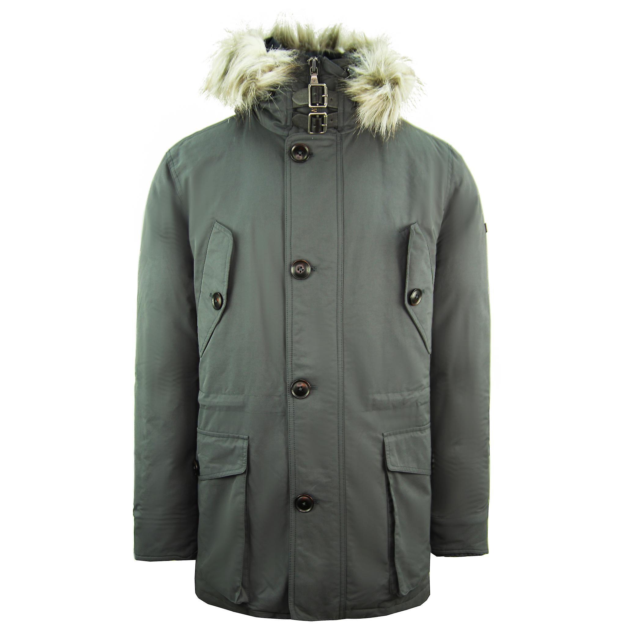 Hackett London Down Filled Arctic Parka Zip Up Men Grey Winter Coat HM402494 987
