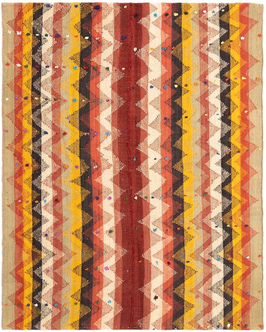 Made in: Central Asia Collection: Jajim old Construction: HandMade Pile Material: Wool | Pile Height: 0.6 cm The primary color is Red Colors included: Red, Yellow, Beige Condition: