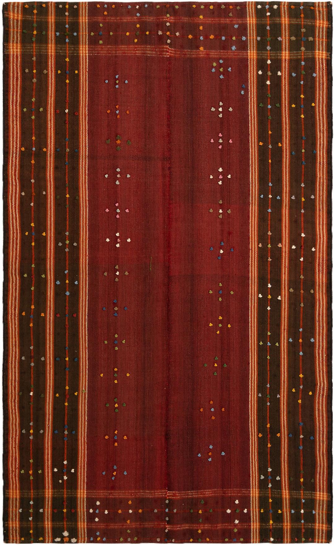 Made in: Central Asia Collection: Jajim old Construction: HandMade Pile Material: Wool | Pile Height: 0.6 cm The primary color is Red Colors included: Red, Brown Condition: