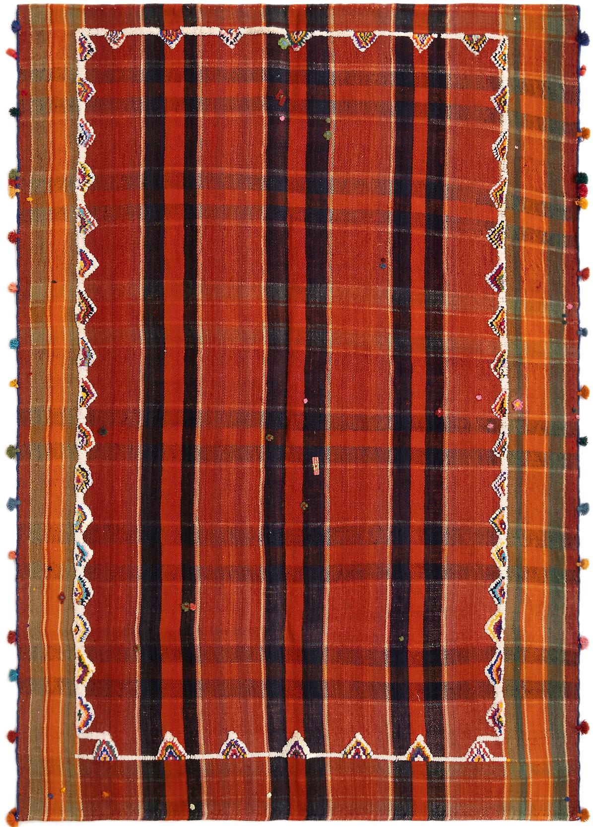 Made in: Central Asia Collection: Jajim old Construction: HandMade Pile Material: Wool | Pile Height: 0.6 cm The primary color is Red Colors included: Red, Dark Blue, Orange, Green Condition: