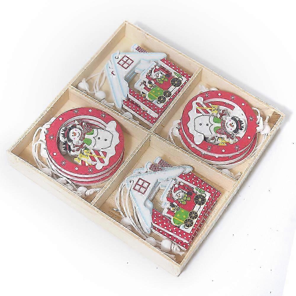 HaKeLai 12Pcs Navidad 2021 Christmas Tree Decorations New Year 2025 Craft Wooden Ornaments Christmas Decorations for Home Xmas Noel Gift
