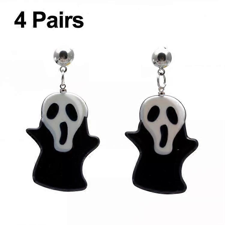 Halloween Acrylic Earrings-4 Pairs Festive Jewelry,Black Ghost Design