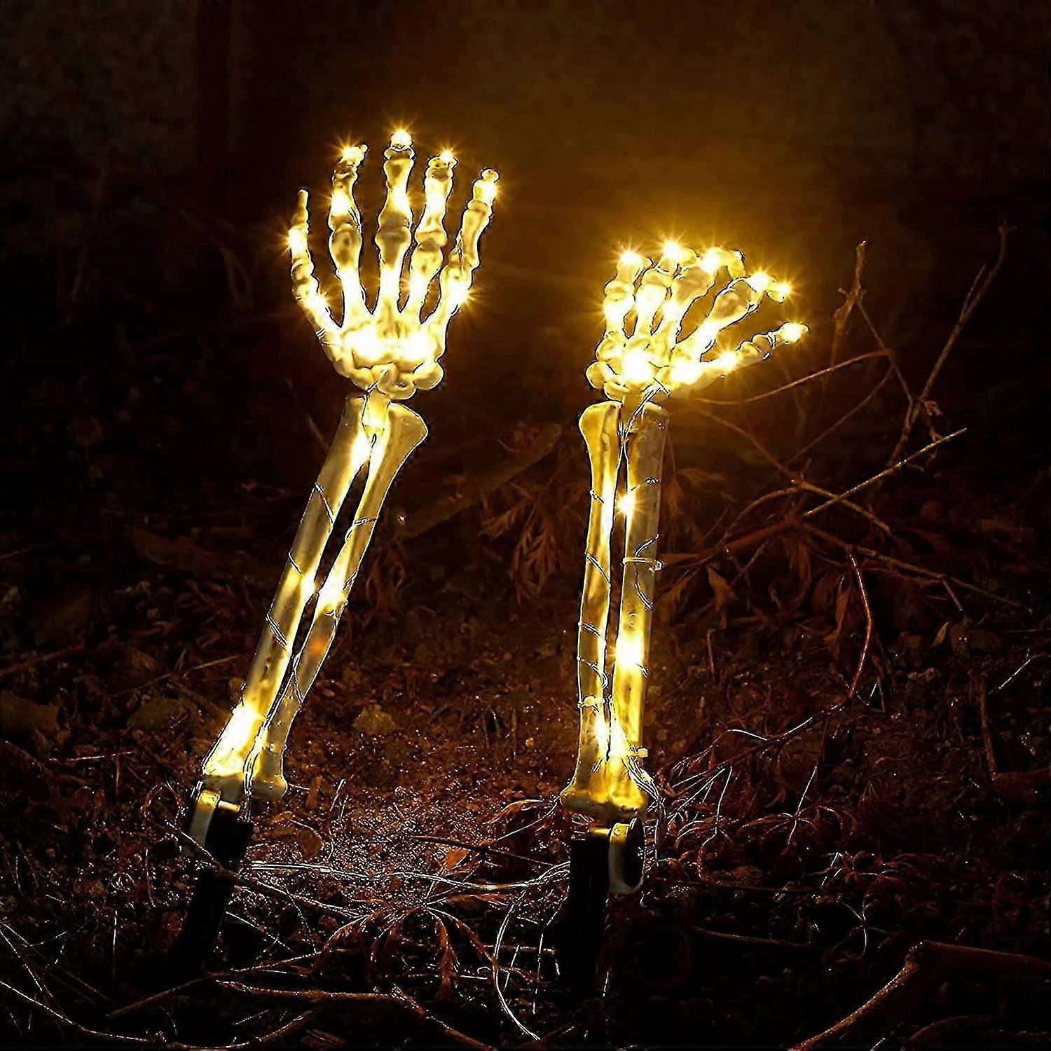 Halloween Decoration Skeleton Hand Decorations, 2 Pack Realistic Skeleton Arm Stakes, Lighted Scary Hands Bone Light Up Holiday Party