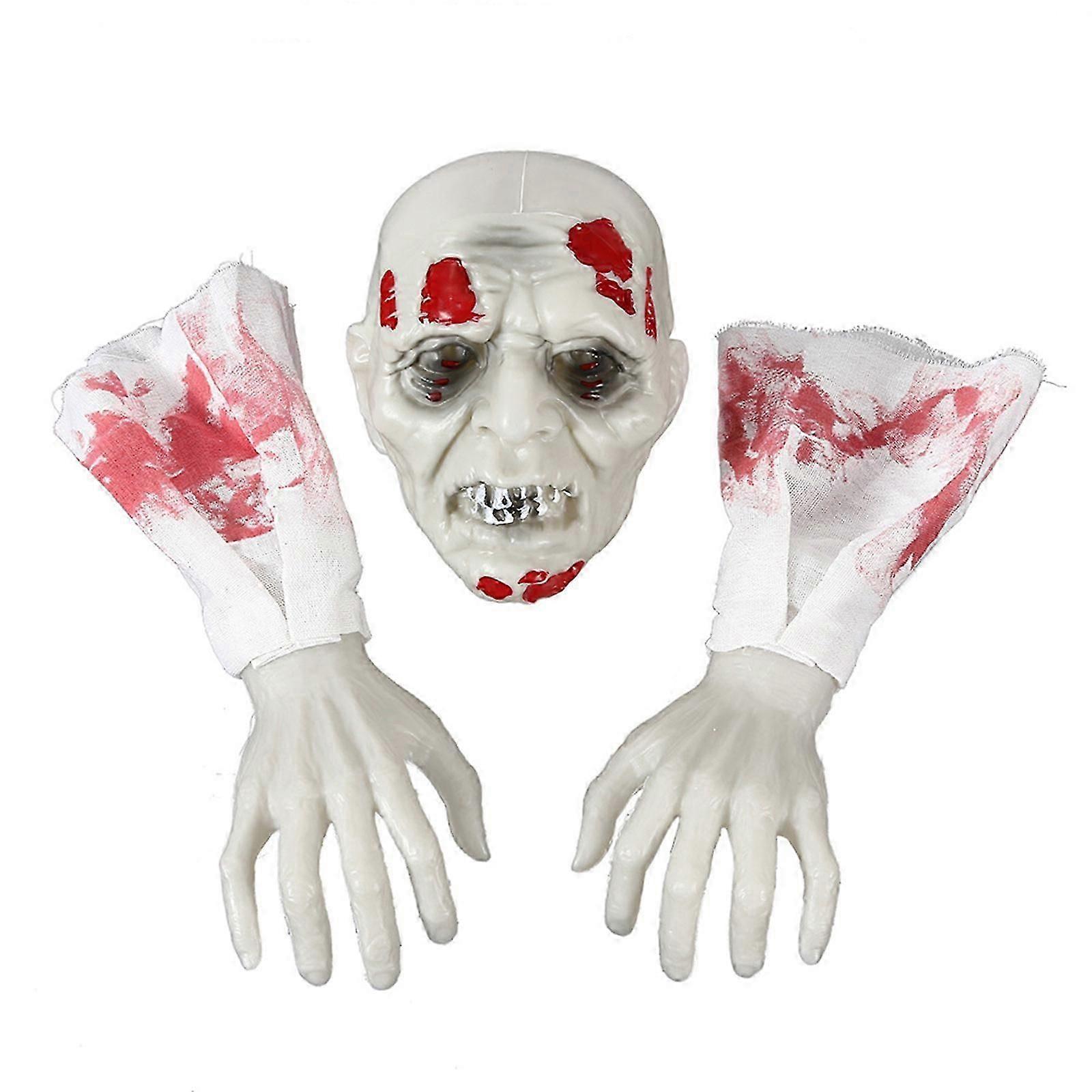 Features1. Thanks to the vivid design of the halloween decorations outdoor you can immerse yourself in the macabre ambiance with this meticulously crafted outdoor Halloween decoration. Featuring two realistic zombie arms with clothes and a scary detailed zombie face, this halloween decoration brings the essence of the undead to life and make your outdoor space into a frightening scene.2. Built In LED: In order to enhance the fright factor which brought by halloween zombie decor, we've designed the halloween decor with built-in warm LED lights. Designed to replicate the pallid skin, the eerie glow emitted by the LED lights simulates the skin color of zombie over the zombie face and arms, amplifying their chilling effect and making them even more bone-chillingly realistic.3. Easy Installation: Effortlessly set the stage for terror with easy installation of this Halloween zombie decoration. The package includes durable stakes that securely insert the zombie arms and face into the ground. With just a few simple steps, you can position the pieces in any desired location with soft ground, creating a nightmarish display that will send shivers down the spines of all who encounter it. 4. Wide Use: Unleash your imagination and conjure up the perfect haunted atmosphere for various occasions. Whether you're attending a spine-chilling Halloween party, a haunted house party or a themed event seeking to evoke a sense of terror, this halloween decor outdoor is a versatile addition. With the help of halloween decorations your party will be more unforgettable.5. Great Choice: Each Halloween decoration outdoor set includes two meticulously crafted zombie arms capturing every grisly detail, also comes with hauntingly realistic zombie faces to enhance your Halloween mood. SpecificationMaterial: PlasticColor: WhiteSize: 35 x 24 x 15Weight: 410 gPackage Include:1x Halloween Decorations Outdoor
