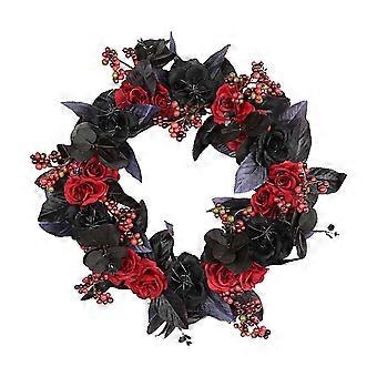 Halloween Door Decorations, Black Red Rose Spooky Garland Leaves Branch