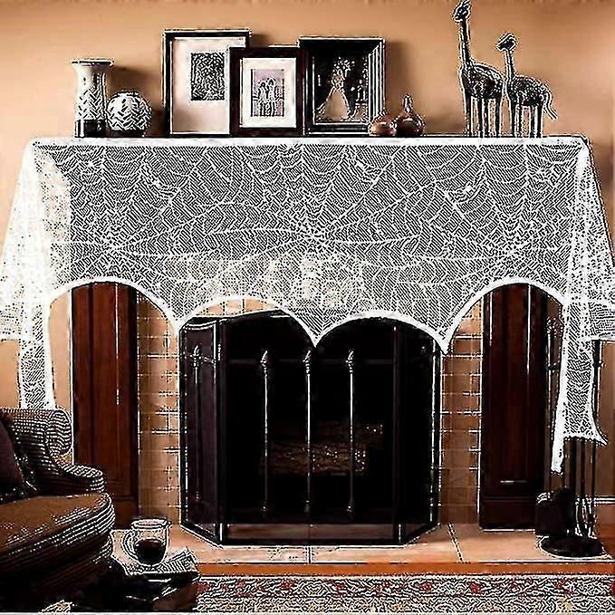Halloween Fireplace Mantel Scarf, White Lace Spiderweb Fireplace Cover For Halloween Home Party Decorations, 18 X 98 Inch Bd