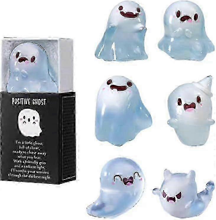 Halloween Mini Ghost Figures with Box, Luminous Ghost Miniature Resin Figurines, Glow in The Dark Mini Resin Ghosts, for Halloween Party Favors 6pcs S