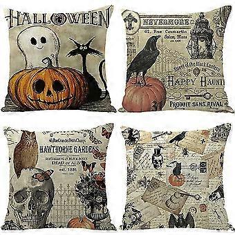 Halloween Pillow Covers 18x18 Set of 4 Pumpkin Skeleton Ghost Halloween Pillows Decorative Throw Pillows Cases Fall Throw Pillows Halloween Decoration
